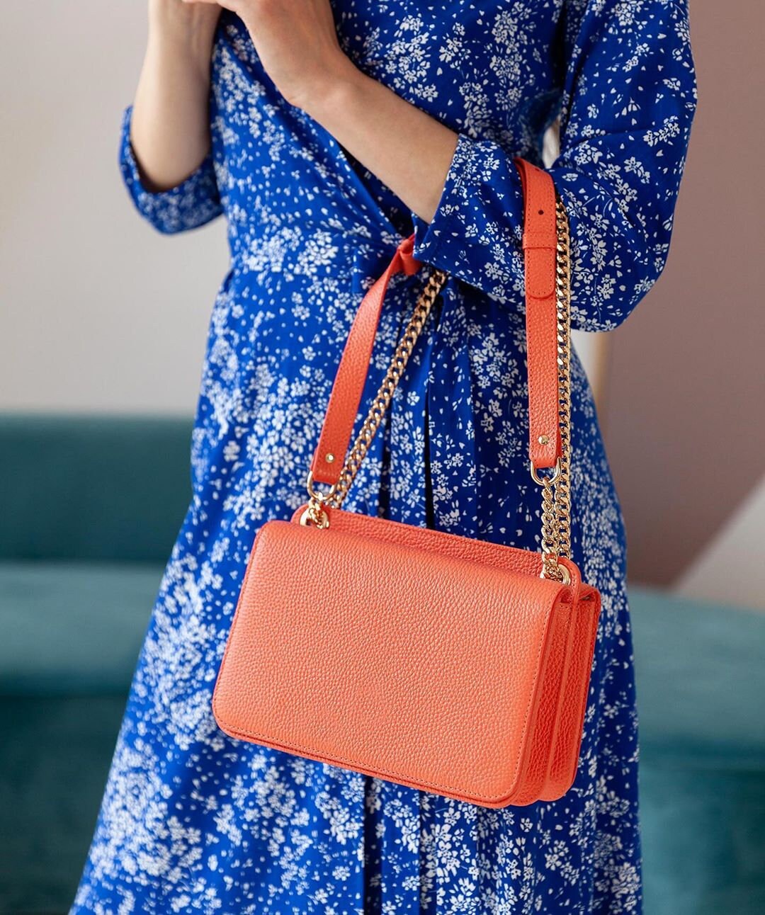 Coral bag on a chain made of genuine leather from Ukrainian designer Katerina Fox. This model is designed for women who value elegant design combined with functionality and comfort. High-quality and reliable equipment guarantees a long service life of bags. All accessories for bags Katerina Fox produces the same factory as for Michael Kors, Calvin Klein, DKNY and other well-known brands. Inside the bag there are two spacious compartments and two patch pockets, the bag closes with magnet buttons.