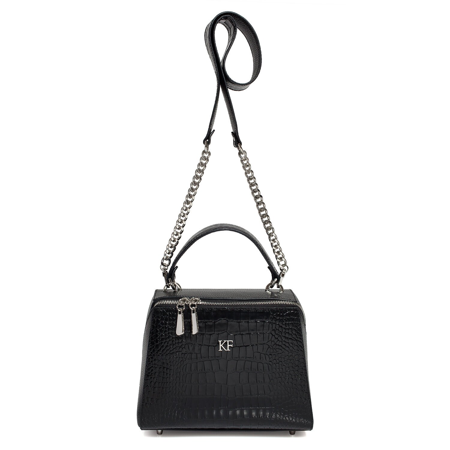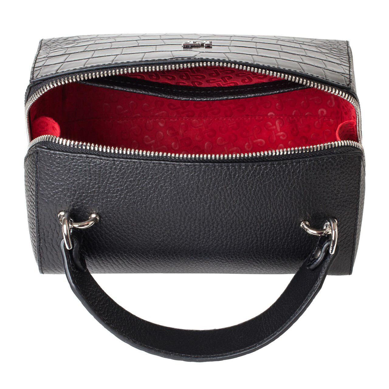 Leather Top Handle Bag, Black Leather Handbag Top Handle, Women's Leather Bag KF-3183