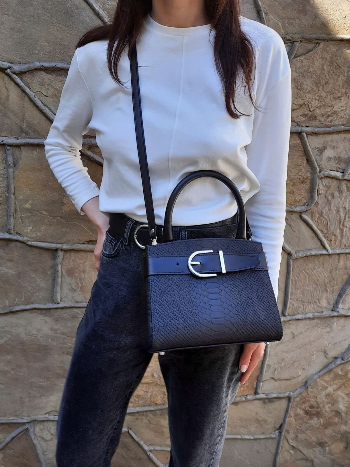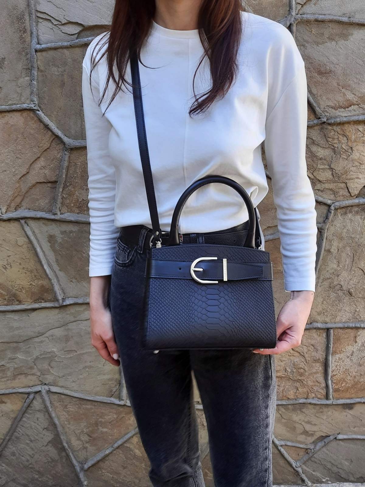 Leather Top Handle Bag, Black Leather Handbag Top Handle, Women's Leather Bag KF-4987