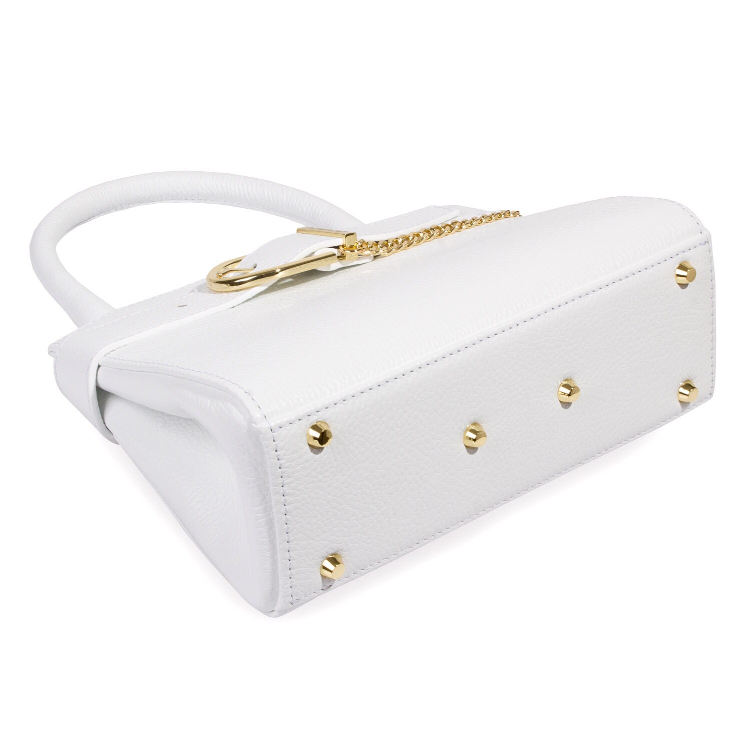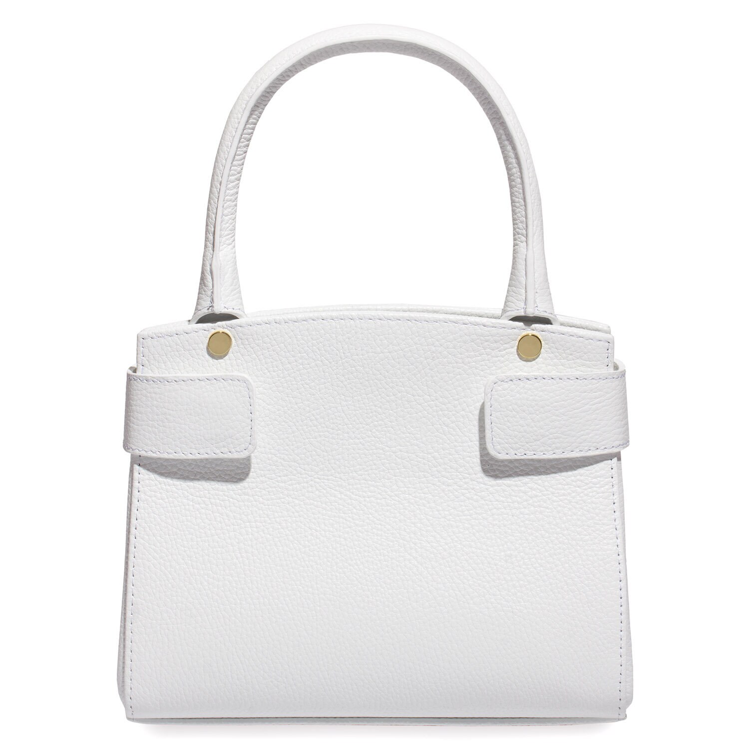 Women's leather bag made of genuine leather, hardware with galvanic coating and microfiber lining. The internal space of a bag is equipped with three compartments, one compartment and two side pockets, one with a zipper. §³loses with 3 magnet buttons. The bottom of the bag is protected with metal legs. There is a long handle that allows you to wear the bag on the shoulder. The kit also includes a storage bag.